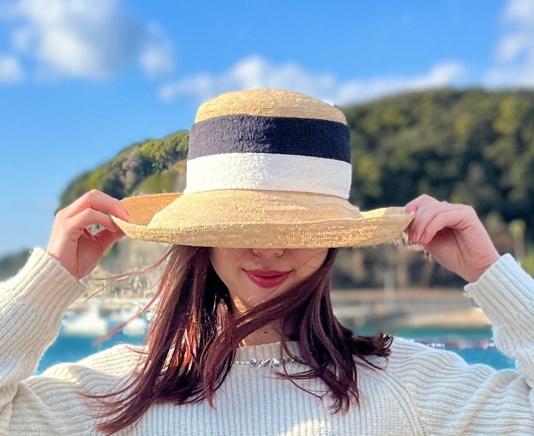 【畳める】ラフィア かぎ編み スーパーファイン 極細編み ナチュラル バンドリボン 日本製 岡本帽子