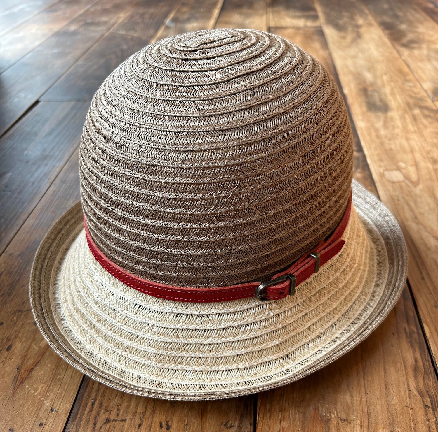【軽量】マニラ麻 ボーラー風 本革ベルト モカ×ナチュラル 日本製 岡本帽子
